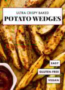 Everyone loves these ultra crispy baked potato wedges! This recipe is easy and turns out perfectly every time. Make these potato wedges whenever the French fry craving strikes!