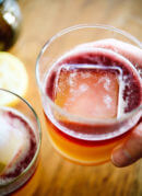 Learn how to make a New York sour cocktail. I sweeten mine with maple syrup instead of simple syrup, which tastes amazing! They’re easy to make, too. Recipe as written below yields one cocktail. You can make two or three cocktails at once in your cocktail shaker; just pour them over ice and top each one with a wine float as explained below.