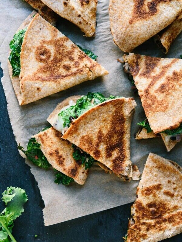 Make it vegan:ย Omit the cheese and spread ยผ cup cashew sour cream (see my cookbook, page 217) or hummus over the tortilla (check out these hummus quesadillas), and use oil instead of butter for brushing.