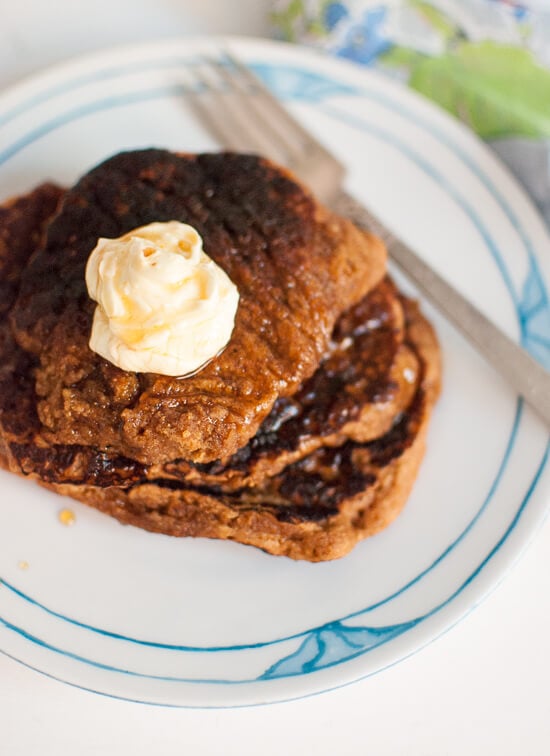 I really wanted to revisit this gingerbread pancakes recipe that I published almost four years ago exactly. Itโs one of my favorites. Iโve just been reticent to promote these pancakes because they looked like unappetizing brown blobs in the old photos. Here are some better photos to do them justice, along with a revised recipe that meets my post-cookbook recipe-writing standards. I also added special diet notes, so these should work if youโre vegan and/or gluten free.